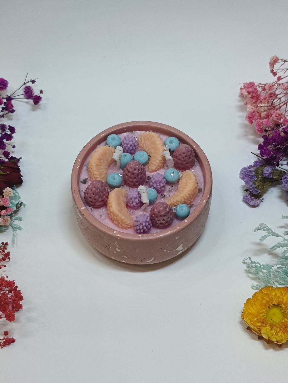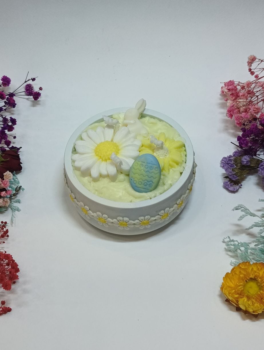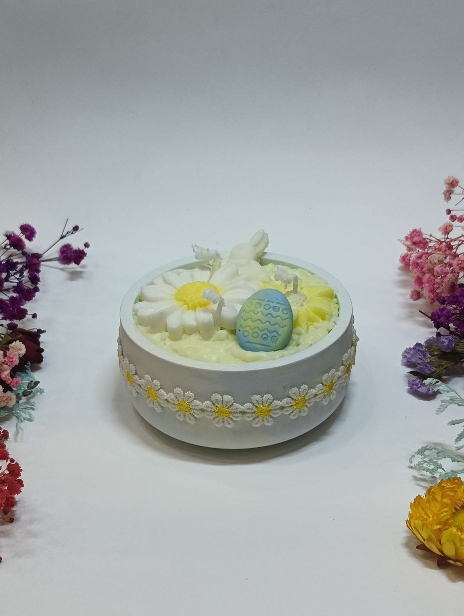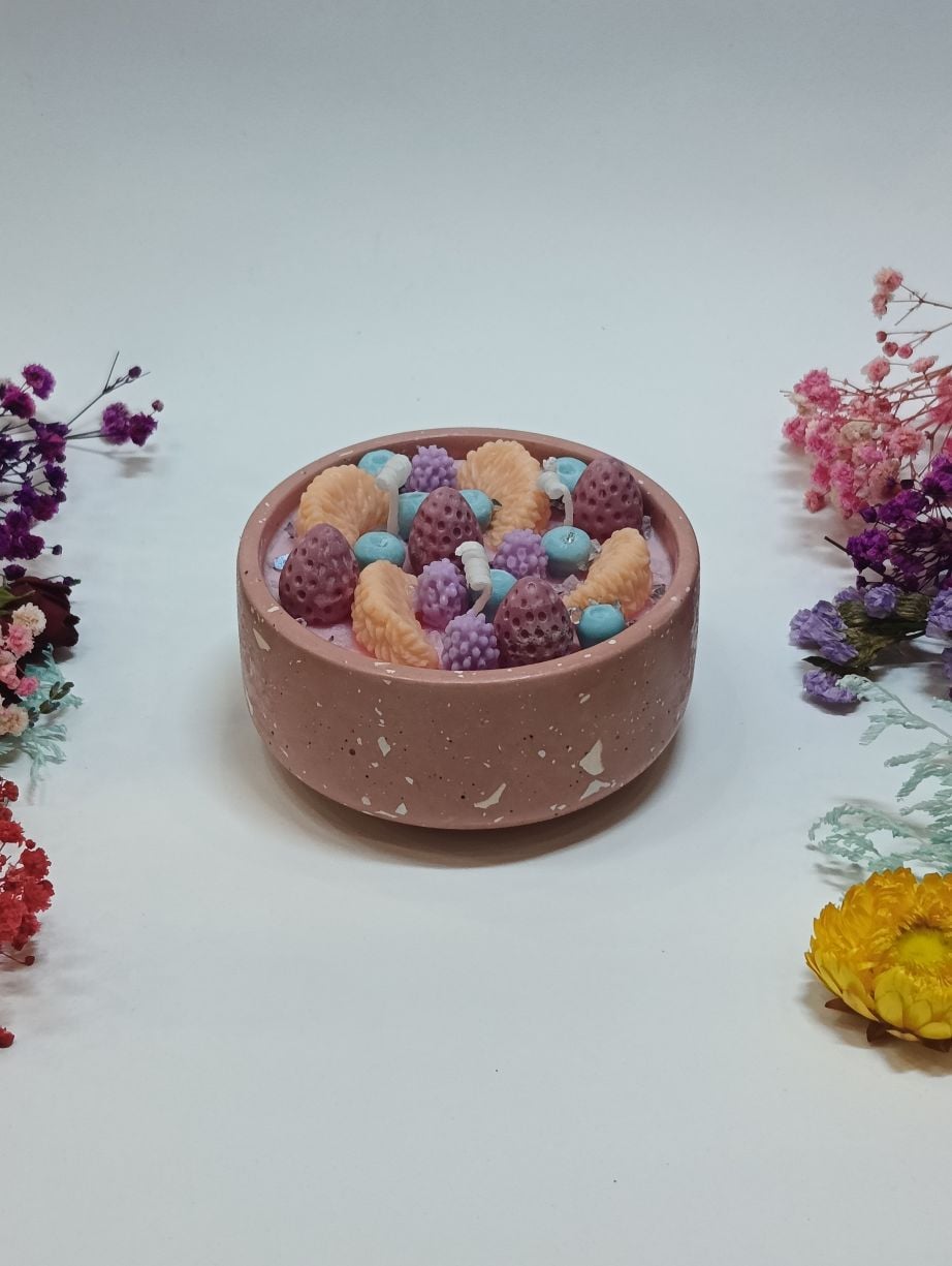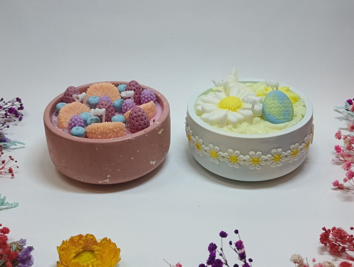 Τα δοχεία είναι γεμισμένα με φυτικό αρωματικό κερί διακοσμημένα με κέρινα στοιχεία σε ζωηρές ή παλ αποχρώσεις. Κάθε κομμάτι είναι φτιαγμένο με προσοχή στη λεπτομέρεια, δημιουργώντας ένα ξεχωριστό αποτέλεσμα που συνδυάζει διακόσμηση και άρωμα.